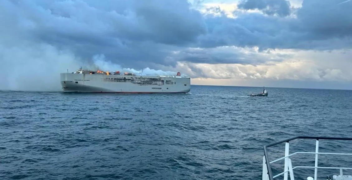 واندلع الحريق مساء أمس الثلاثاء في السفينة فريمانتل هايواي المسجلة في بنما. ويبلغ طولها 199 مترًا وكانت في طريقها من ألمانيا إلى مصر، وأجبر الحريق العديد من أفراد الطاقم على القفز منها للنجاة بأرواحهم.