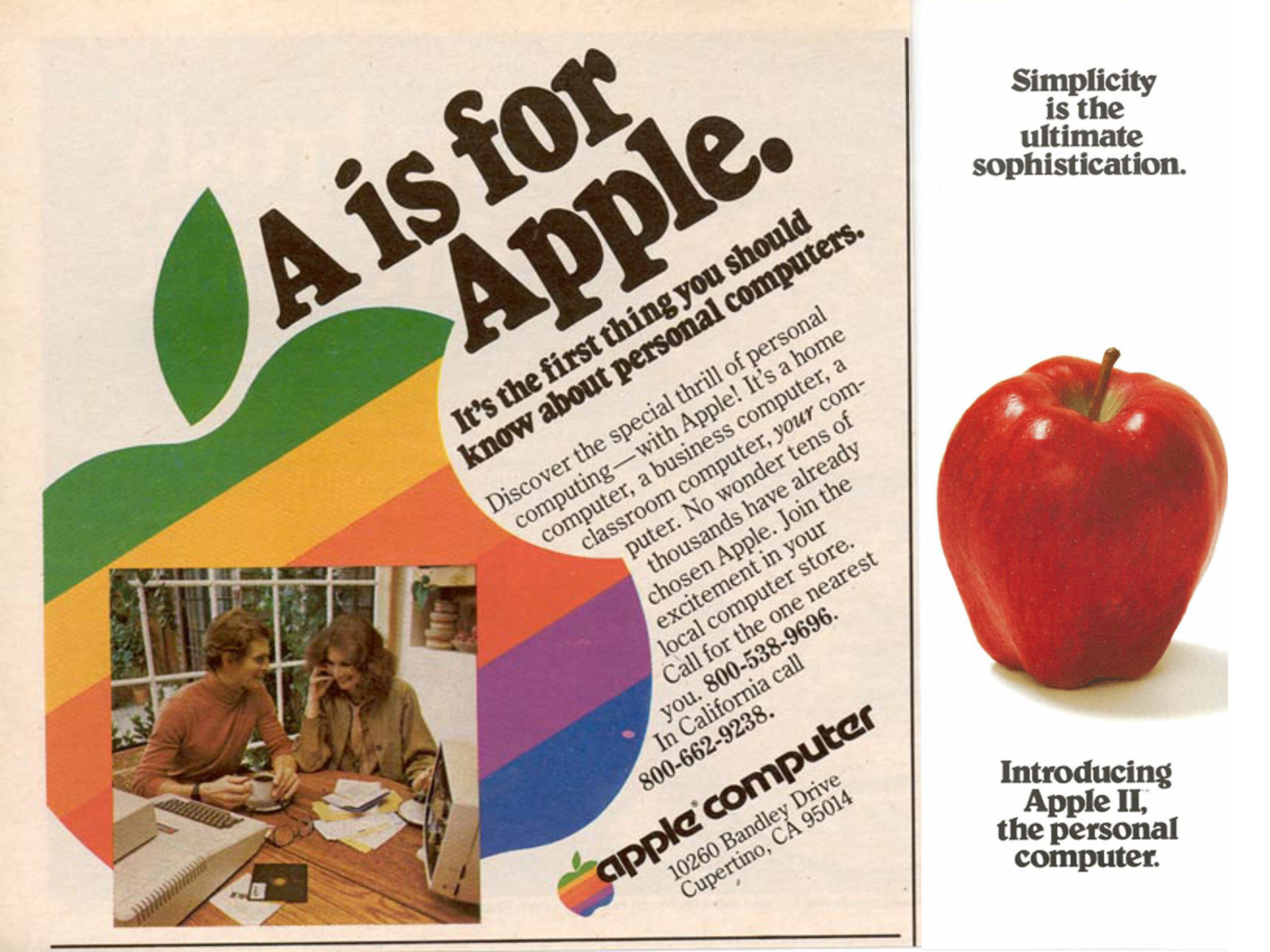 بدأت شركة Apple الإعلان في عام 1976، منذ ما يقرب من 47 عامًا حتى اليوم شهدنا تطول ادواتها الإعلانية مثلما شهدنا تطور منتجاتها. فقد ظهرت أول حملة للشركة وكانت مخصصة لجهاز الكمبيوتر الأول الخاص بها – Apple I. وكانت تبدو مثل نشرة إعلانية وكانت غنية بالنصوص للغاية مع عدد قليل جدًا من الصور، وكان أحدها هو الشعار الأول للشركة.
