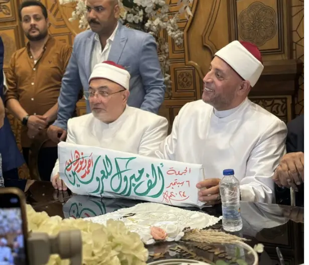 وظهر الداعية المصري رمضان عبد الرازق خلال عقد القران بحضور عدد كبير من شيوخ وعلماء الأزهر، بينهم الشيخ خالد الجندي، عضو المجلس الأعلى للشؤون الإسلامية في مصر.