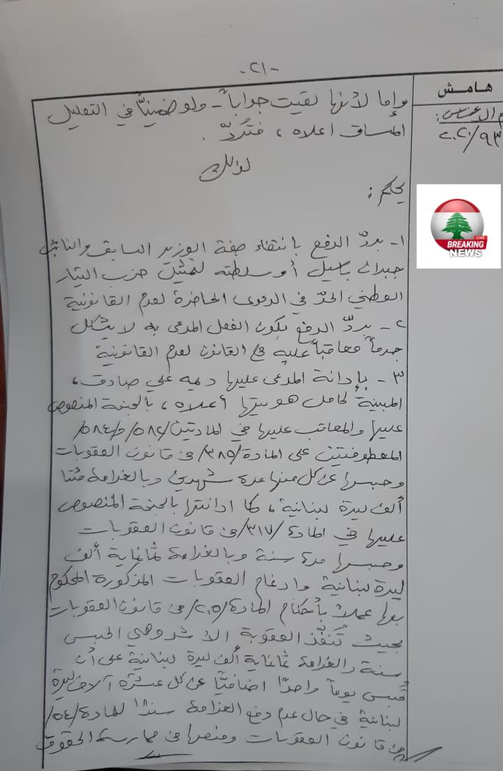 جبران باسيل انتزع قرار قضائي بسجني سنة دون ايقاف التنفيذ من محكمة الجزاء من خلال القاضية روزين حجيلي في سابقة استثنائية. نعم، في لبنان صارو الصحافيين بيبسجنو بدعاوى القدح والذم. طبعا سأستأنف و النضال مكفي. pic.twitter.com/93tXpabQke