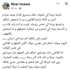 آخر بوست كتبه لاعب كرة القدم التونسي‬⁩ قبل أن يضرم النار في جسده احتجاجًا على الافتراء عليه وفق قوله: