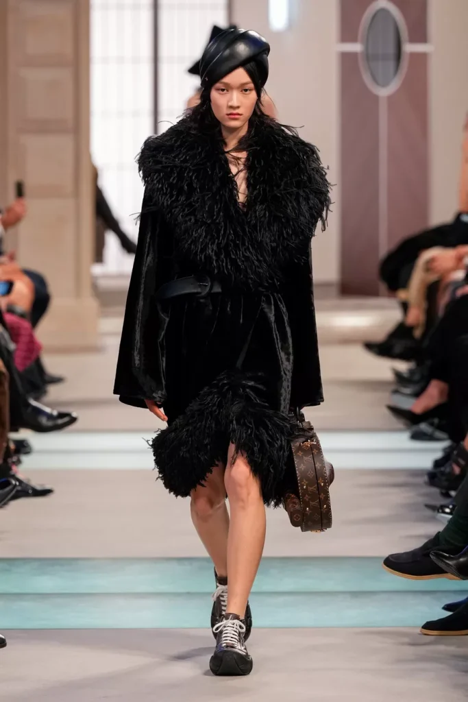 عرض لويس فويتون لخريف وشتاء 2025- 2026 محطة عبور غريبة حيث يتشابك اللقاء مع الوداع وحيث يختلط الغرباء مع بعضهم دون معرفة هوية الأخر. هذا هي الفكرة خلف هذه المجموعة التي توضح معنى العبور من حافة إلى أخرى ومن زمن إلى أخر.