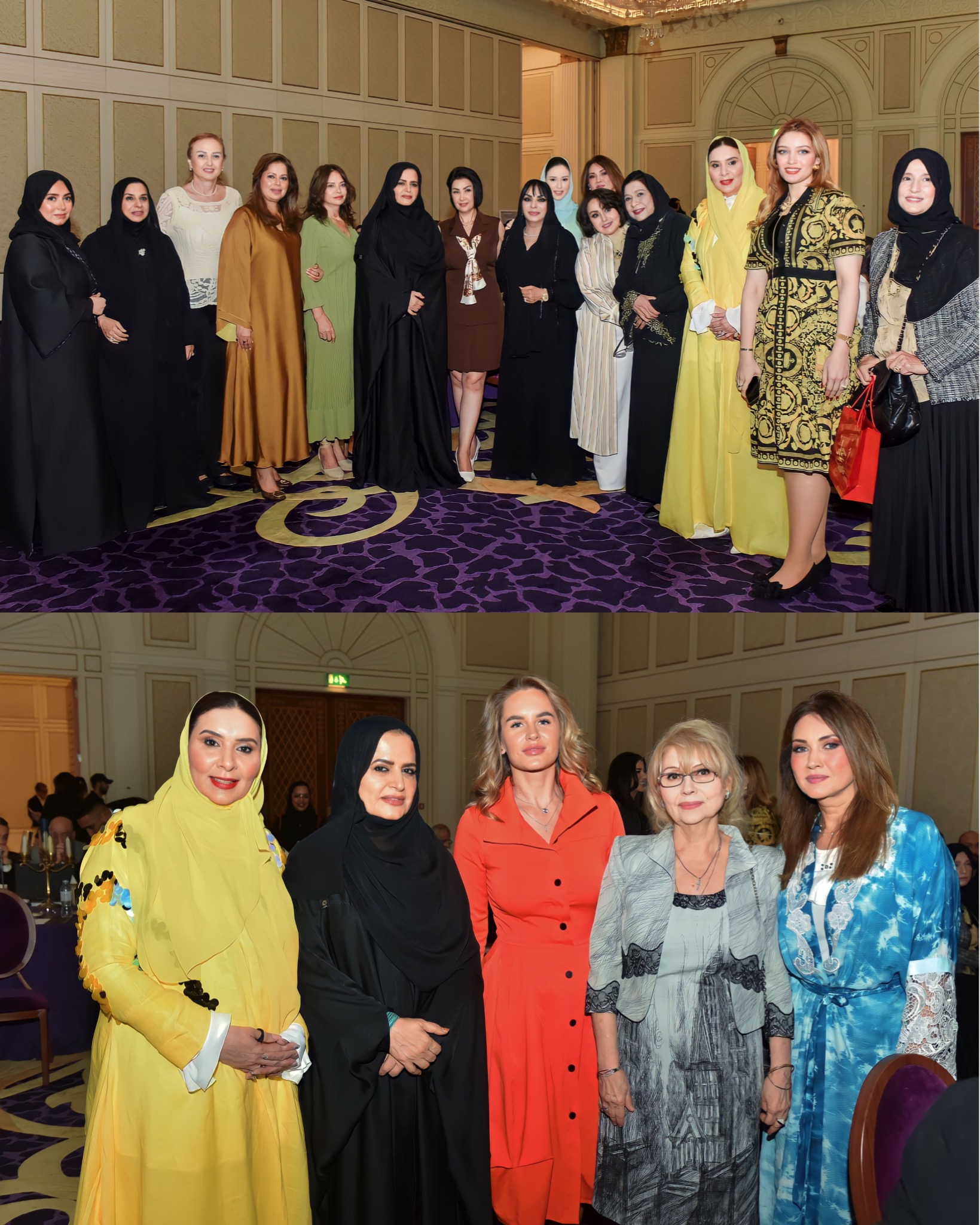 الشيخة فاطمة بنت حشر بن دلموك، وزينب الإمام، وعدد من سيدات الأعمال ومصممات الأزياء في لقطة جماعية بعد المؤتمر الصحافي
