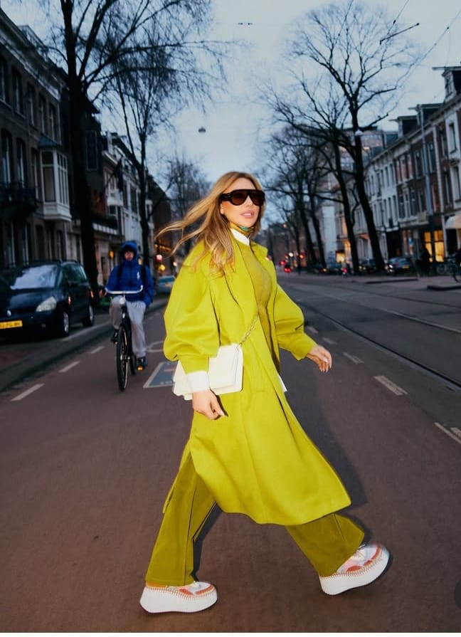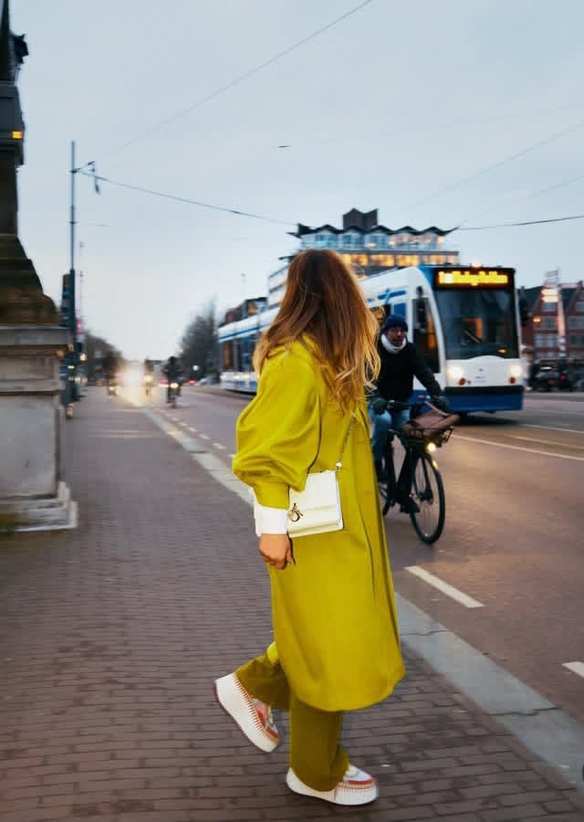 توثق نجوى كرم حضورها في امستردام وهي تتجول في شوارع المدينة التي ستشهد على لقاء معها في حفل فني اليوم في  شباط – فبراير. نجوى التي ارتدت اللون الخردلي بدرجات متعددة من معطف بلون الخردلي الأصفر وحذاء رياضي ملون يترافق مع out fit كامل باللون الخردلي الشتوي بامتياز وحقيبة بيضاء وضعتها بطريقة cross ونظارات شمسية سوداء.