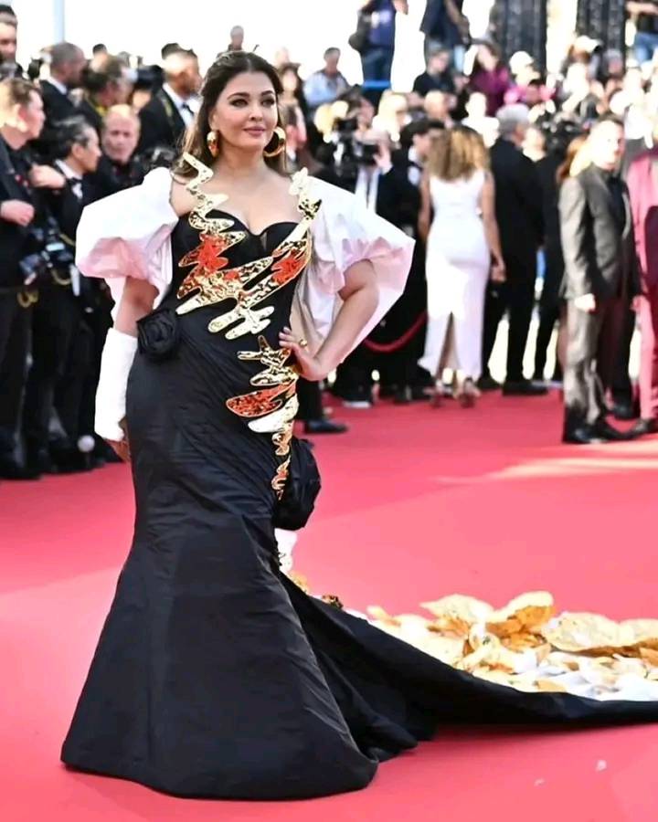 النجمة آشواريا راي تألقت في مهرجان كان السينمائي بدروته 77 بثوب الغرابة والضخامة التي استحقت عن هذه الإطلالة لقب “الملكة”.