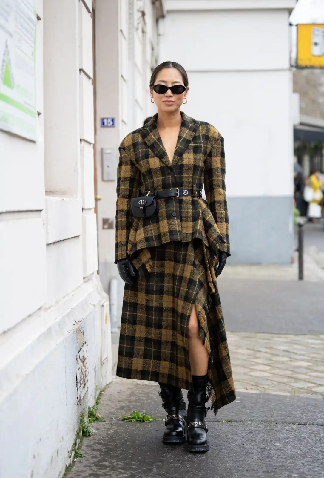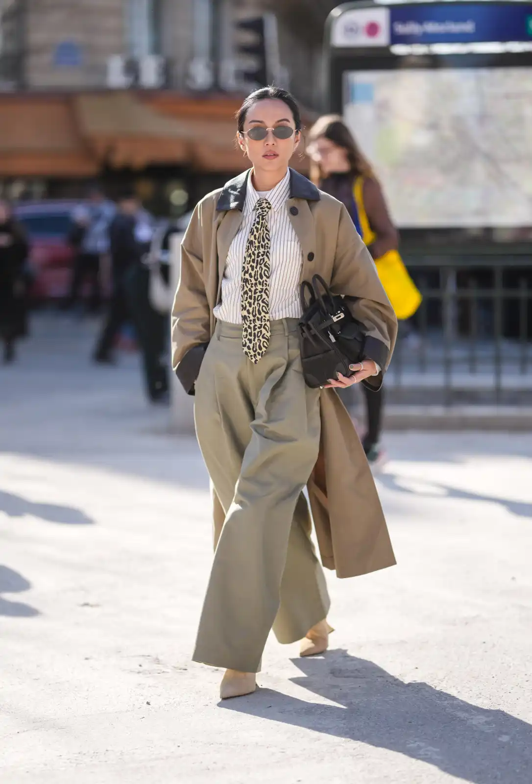 أما مدونة الموضة السنغافورية يويو كاو، فاختارت تنسيقاً أكثر كلاسيكية، ارتدت فيه قميصاً مخطّطاً من هيرمس وربطة عنق بطبعة جلد النمر، ونسّقته مع معطف بلون حيادي، أضفى لمسة جريئة ومتقنة على الإطلالة.