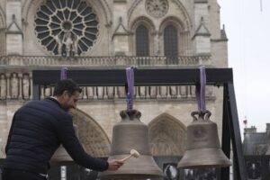 بعد أكثر من خمس سنوات على الحريق الذي أتى على أجزاء واسعة من لكاتدرائية نوتردام في باريس الكاتدرائية، دقت الأجراس الثمانية لبرج الجرس الشمالي للكاتدرائية التي تستعد لإعادة فتحها في 7 ديسمبر /كانون الأول.