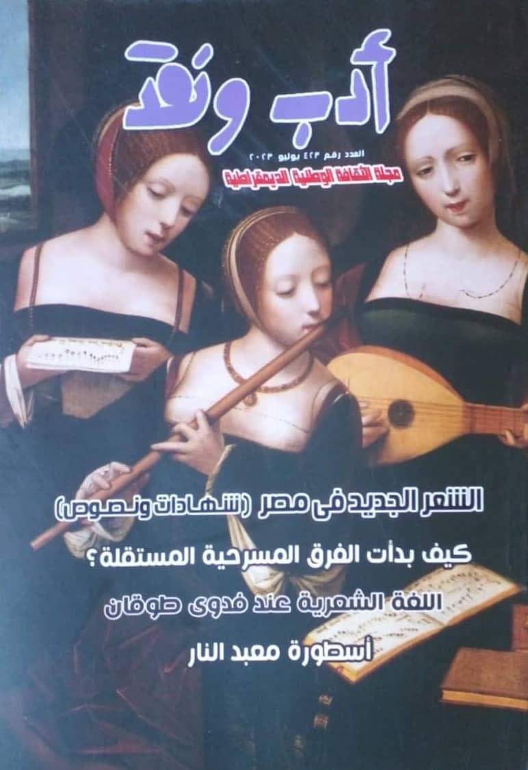 تضمن العدد الجديد من مجلة أدب ونقد التي يرأس تحريرها الشاعر عيد عبد الحليم وتصدر عن حزب التجمع بمصر ملفًا كبيرًا عن شعراء قصيدة النثر في مصر من خلال دراسات لكل من الشاعر كريم عبدالسلام والشاعر أمجد ريان والناقد عبد الحكم العلامي والشاعر وليد طلعت والناقد عمر شهريار