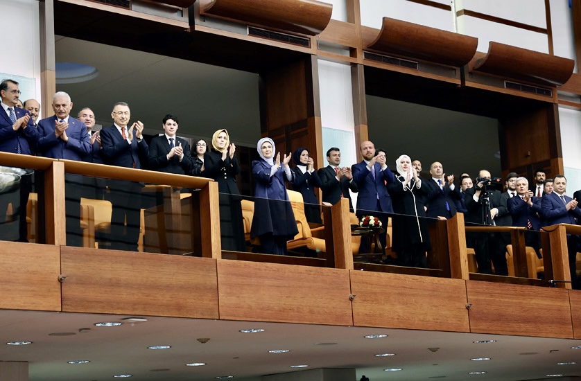 بمراسم عسكرية، استُقبل رجب طيب أردوغان لدى وصوله إلى “مجلس الأمة التركي الكبير (البرلمان)”، من طرف نائب رئيس البرلمان المؤقت “دولت باهتشلي“، ليتوجه بعد استعراضه حرس الشرف برفقة عقيلته السيدة الأولى أمينة أردوغان من بوابة الشرف إلى جلسة الجمعية العامة ل”مجلس الأمة التركي”، لأداء اليمين الدستورية كرئيس للجمهورية التركية لولاية ثالثة تمتد 5 أعوام.