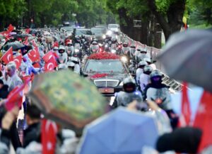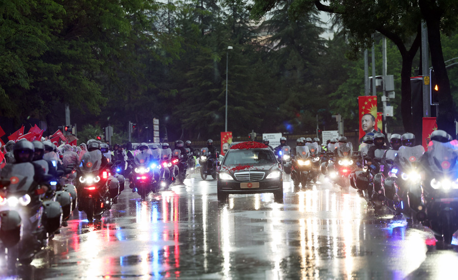 وفي تمام الساعة 9:00 مساءً توقيت الإمارات العربية المتحدة، اتجه الرئيس رجب طيب أردوغان في موكب رسمي، إلى “المجمع الرئاسي” بالعاصمة أنقرة، لحضور مراسيم تنصيبه رئيساً للجمهورية التركية، بحضور ضيوف مراسيم حفل التنصيب الذين يُمثلون 78 زعيما عالمياً، من ضمنهم رؤساء 21 دولة و13 رئيس وزراء، و12 رئيس برلمان إلى جانب ممثلي 8 منظمات دولية.
