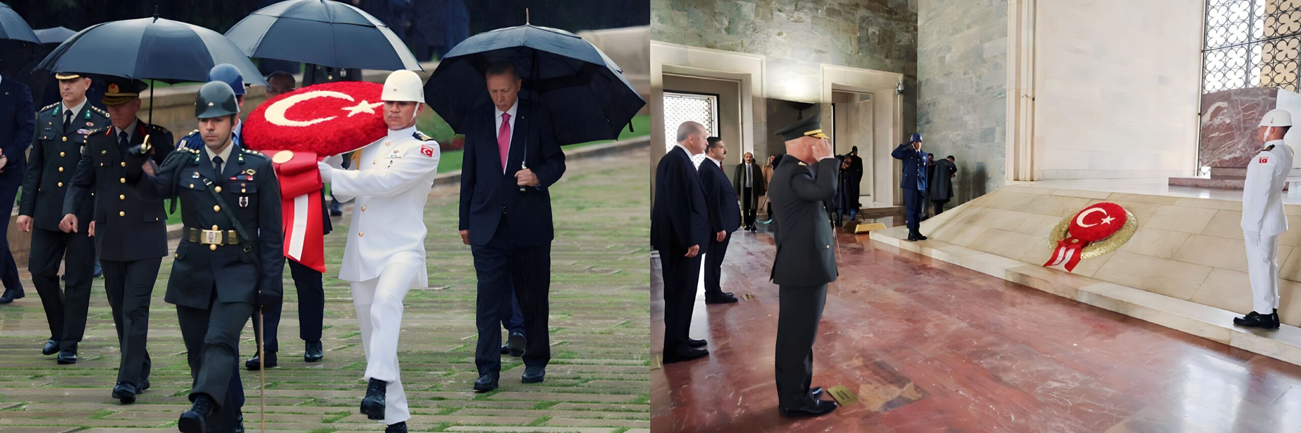 وتخلل مراسيم زيارة الضريح دقيقة صمت، وضع خلالها الرئيس أردوغان، إكليلًا بشكل العلم التركي على ضريح مؤسس الجمهورية “مصطفى كمال أتاتورك” وعُزِف النشيد الوطني. ليتوجه بعد ذلك الرئيس أردوغان إلى برج الميثاق الوطني ودوّن عبارات على الدفتر الخاص بالضريح.