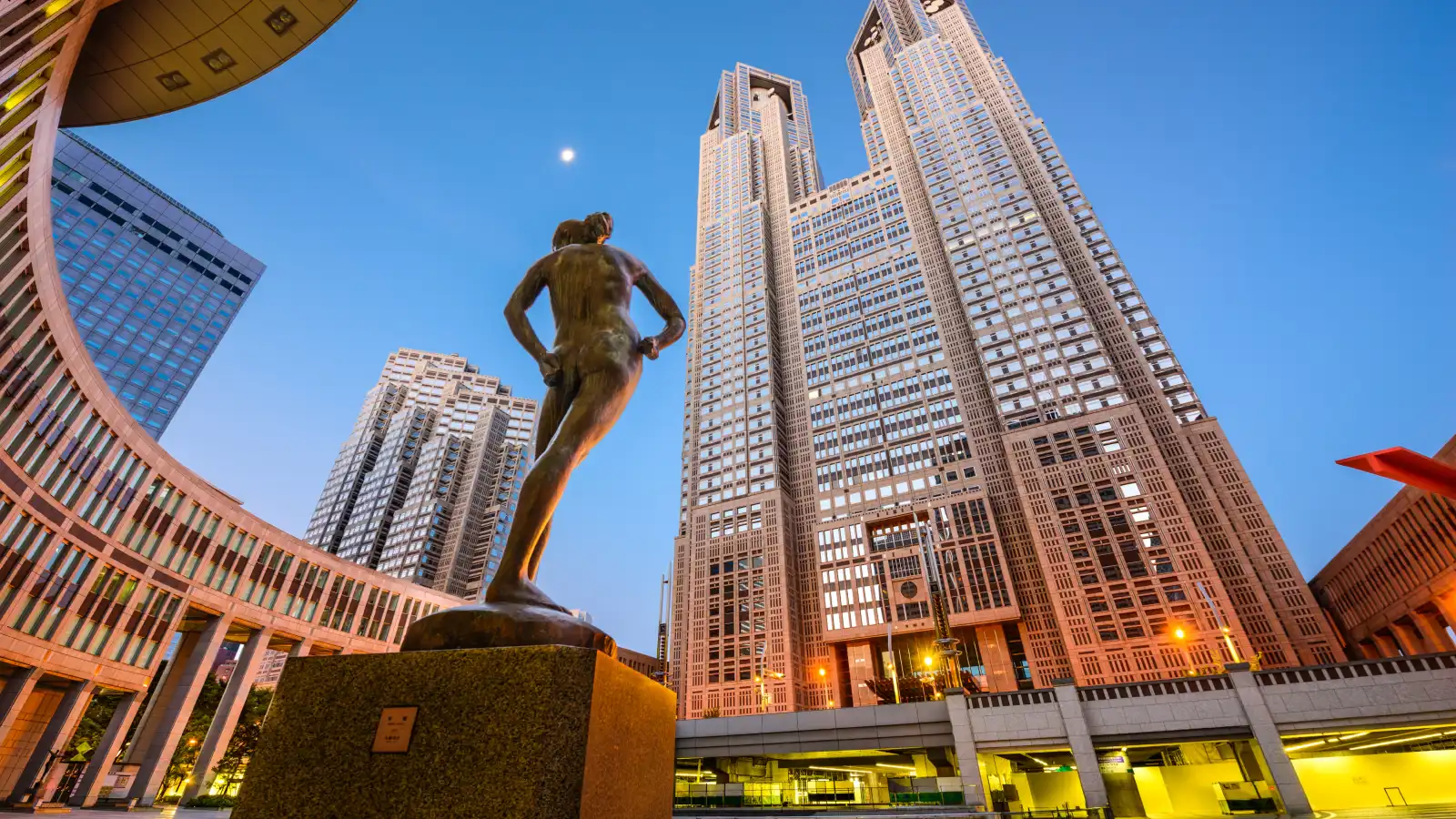 اكتمل بناؤه العام 1991، ويُعد هذا البرج الشاهق مقر بلدية طوكيو. يتميز ببرجين توأمين يبلغ ارتفاع كل منهما 243 مترًا، وكانا الأعلى في المدينة حتى العام 2006. استُوحي شكله من هيئة “الرقاقة الإلكترونية”، وصممه المعماري ومخطط المدن الياباني الشهير كينزو تانغه.