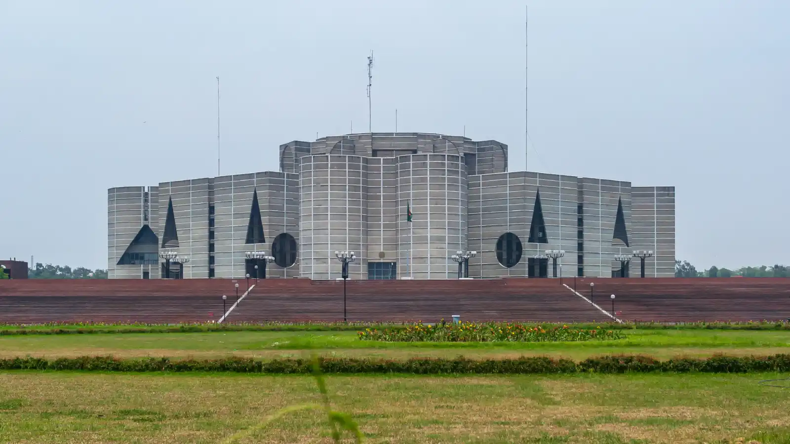 مبنى ضخم يمتد على مساحة 800 ألف متر مربع، ويُعد من أكبر المجمعات التشريعية في العالم. صممه المعماري الأميركي الشهير لويس كان بأسلوب “البروتاليزم” المهيب، ليصبح، اليوم، أيقونة معمارية في قلب العاصمة دكا.