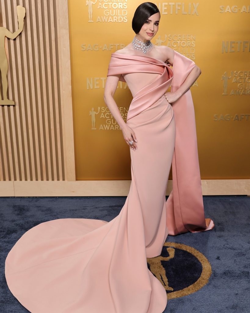 اختارت صوفيا كارسون لمسة من الدراما في حفل توزيع جوائز SAG لعام 2025 يوم الأحد في لوس أنجلوس. إذ فضلت الممثلة ونجمة ديزني ، التي تعد واحدة من سفراء الحفل هذا العام ، أن تظهر بأناقة ملفتة وراقية على السجادة الحمراء.