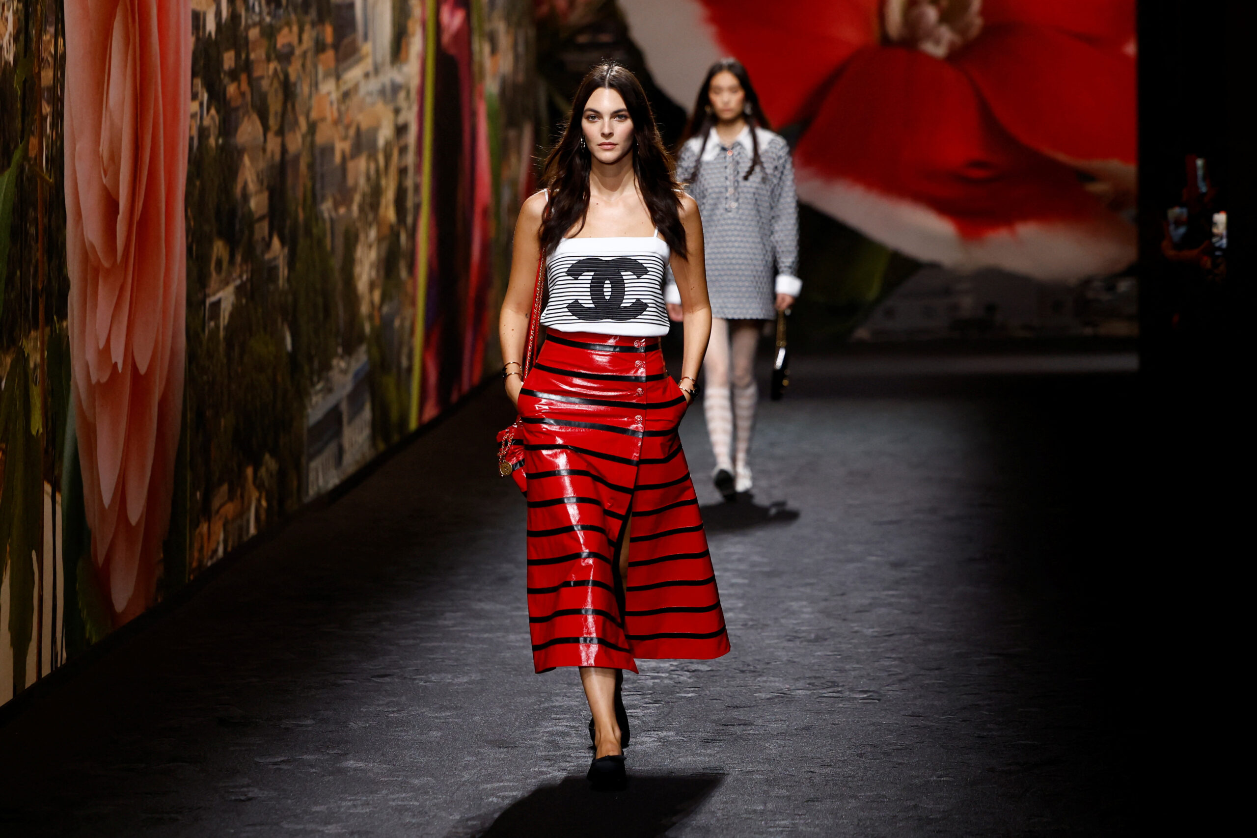 كشفت فيرجيني فيار مصممة دار شانيل النقاب عن مجموعة أزياء للطقس الدافئ في باريس أمس الثلاثاء، حيث عرضت ملابس ملونة بأنماط متباينة ارتدتها عارضات الأزياء مع نعال شاطئ خفيفة ونظارات ذات إطارات سميكة.