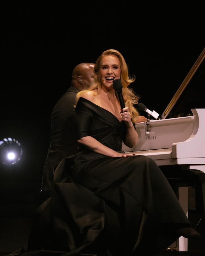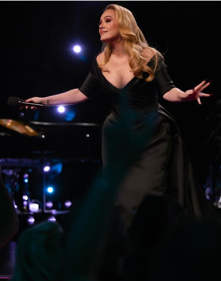 أديل لا تريد أن يعلو أي إبهار فوق صوتها، فأخذت من العتمة سرها وجعلت الأسود خامتها التي تلمع من خلاله بحفلاتها وصوتها.
