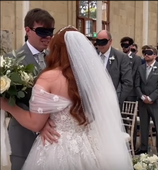 شارك عشرات الحضور في حفل زفاف وهم معصوبو الأعين، كما كان العريس ذاته معصوب العينين في ليلة زفافه، وذلك تضامناً مع العروس التي فقدت بصرها قبل زواجها بسنوات، ولم تتمكن من رؤية حفل زفافها في ليلة العمر.