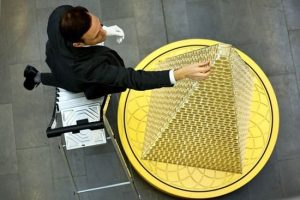 واستغرق بناء الشجرة الذهبية اللامعة، التي يبلغ ارتفاعها ثلاثة أمتار (تسعة أقدام ونصف) أكثر من ساعة، وستظل معروضة حتى 15 كانون الأول (ديسمبر) الجاري.