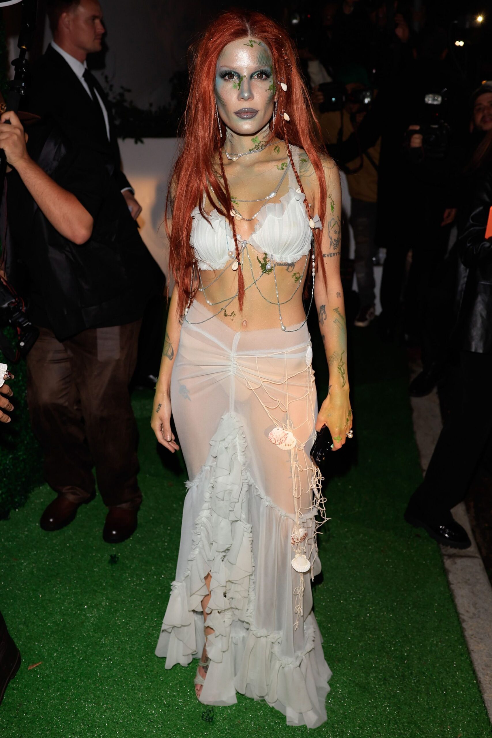 ظهرت هالسي كحورية البحر في تنورة شفافة ومكياج فضي.