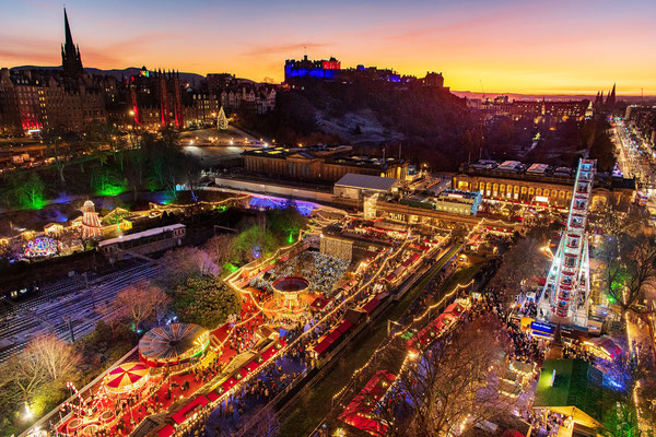 ليست الأسواق المعطّرة برائحة خبز الزنجبيل والحفلات الصاخبة فقط هي التي تجعل من إدنبره الشتوية جذّابة للغاية. حتى تحت السماء الرمادية، سنجد متاحف ومطاعم دافئة ذات مستوى عالمي، ورياح بحر الشمال الجليدية هي العذر للإنغماس في حفرة مائية مريحة لتناول مشروب يبعث الدفء. للحصول على صفقات، يمكن الذهاب في أوائل شهر كانون الأول (ديسمبر) عندما تكون أسواق عيد الميلاد مفتوحة، لكن المدينة لا تزال هادئة نسبيًا. يمكن القيام بجولة على العجلة الكبيرة البانورامية فوق شارع الأمراء، والتجول في الحانات تحت الأضواء الخيالية لشارع جورج، ثم الإنطلاق إلى المعرض الوطني الاسكتلندي للتأمّل في مشاهد الشتاء. بعد حلول الظلام، يمكن التوجّه إلى الحديقة النباتية الملكية لاحتساء عصير التفاح المتبل والاستمتاع بإضاءات عيد الميلاد.