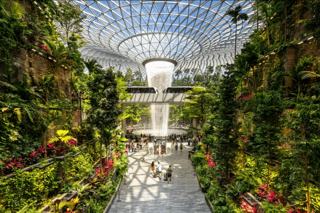 وغالبًا ما يُطلق على مطار شانغي في سنغافورة لقب أفضل مطار في العالم، ويشتهر باحتوائه على أكبر شلال داخلي.