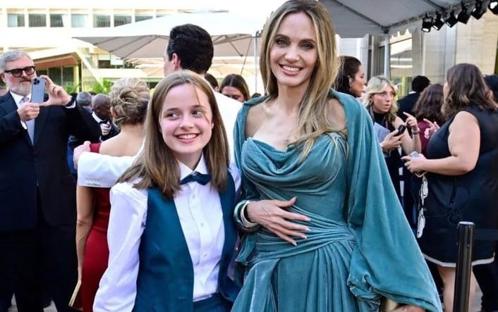 تألقت النجمة انجيلينا جولي 49 عاماً في حفل طوني أواردز وبرفقتها ابنتها فيفيان البالغة من العمر 15 سنة.