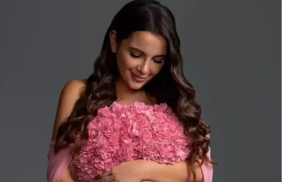 شام الذهبي، كشفت عن الصورة التي اعتمدت فيها على إطلالة باللون الوردي، وظهرت وهي تحمل صغيرتها بين ذراعيها ولم تكشف عن ملامح ابنتها.
