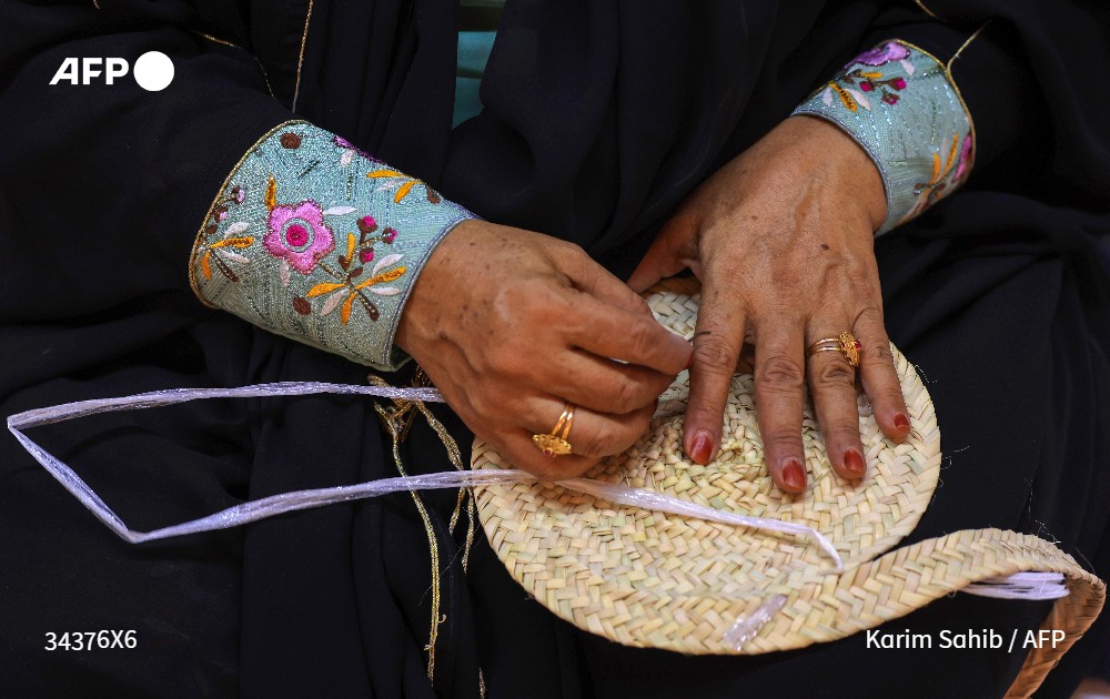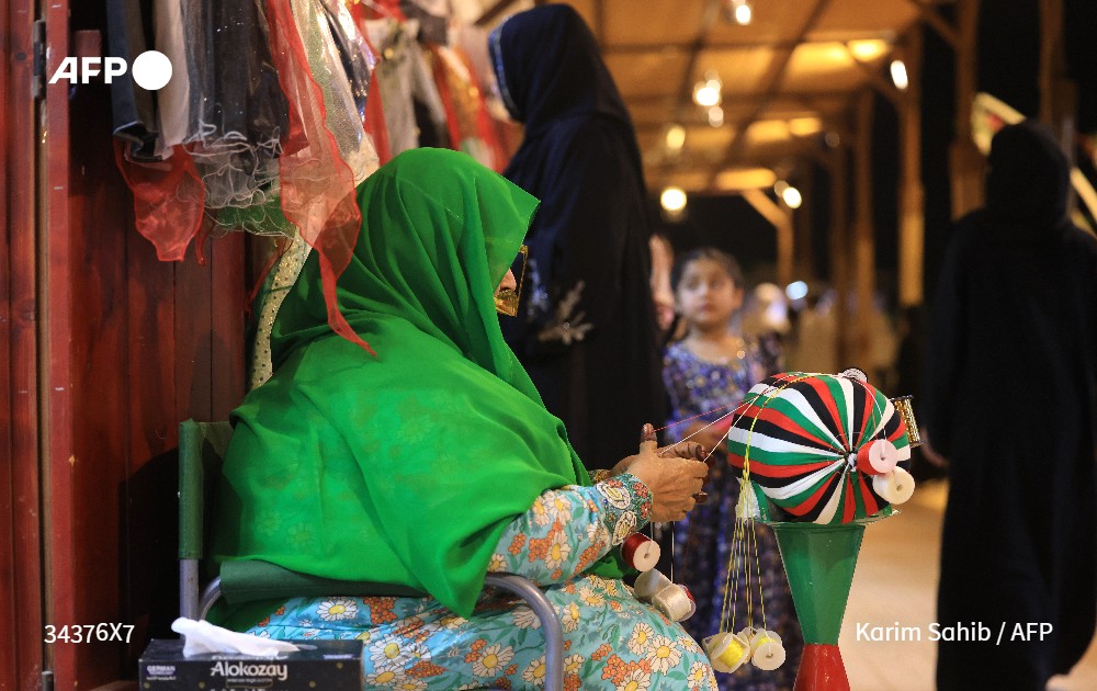 في أحد أكشاك “مهرجان الحرف والصناعات التقليدية” في منطقة العين في إمارة أبوظبي، تراقب طالبة المحاسبة ريم الكتبي (23 عامًا) يدَي الحرفيّة السبعينية وهي تنسج على مخدّة مدوّرة تسمّى “موسدة” مثبّتة أمامها على حامل معدني، خيوطًا، أحدها فضيّ اللون.