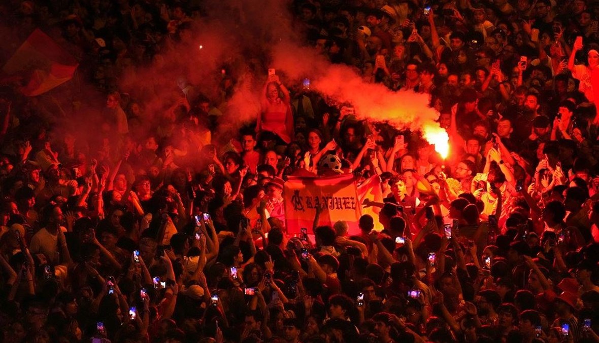 وواصل آلاف المشجعين الحفل الذي بدأ مساء الأحد، حيث غمرت شوارع مدريد وبرشلونة وبامبلونا وبلباو بإطلاق أبواق السيارات وحفلات موسيقية.