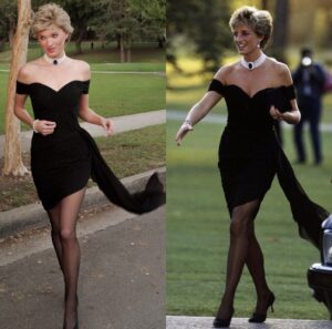 اختارت عارضة الأزياء إلسا هوسك، التأنّق بفستان أسود من “سان لوران” Saint Laurent مطابق للّذي اشتهرت به الأميرة الليدي ديانا، ويعرف بفستان “الانتقام”. كذلك، تزيّنت هوسك بعقد من اللؤلؤ الأبيض مع حجر كبير من الزمرّد الأزرق على غرار الليدي ديانا.