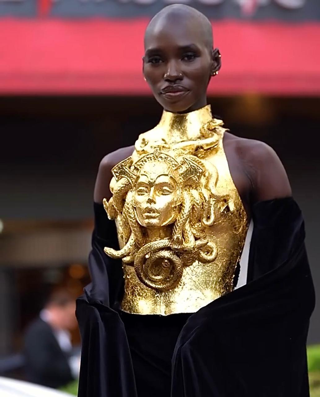 يذكر أن ميتشل أكات، ارتدت العام الماضي في مهرجان كان 2024 تصميماً غريباً برز فيه تفصيل منحوتة من المعدن الذهبي على شكل رأس ميدوسا.