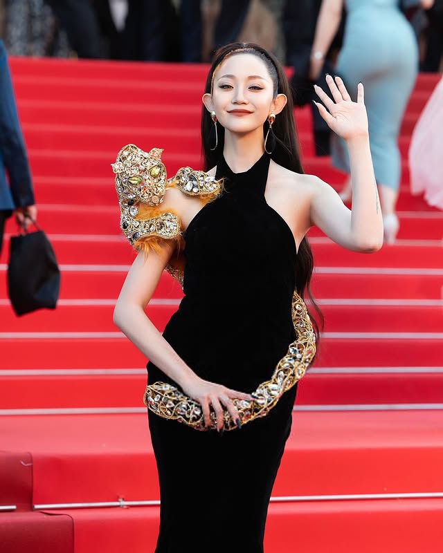 وقد أطلّت الممثلة الصينيّة وان تشيان هوي على السجّادة الحمراء لعرض فيلم (Mission Impossible: The Final Reckoning) في مهرجان كان السينمائي الدولي، بفستانٍ أسود طويل مكشوف الكتفين بنمط “هالتر نك”، برز فيه إكسسوار ضخم على شكل فهد مرصّع بأحجار كبيرة من الكريستال الملوّن اختارته من دار (Maquinn) للخياطة الراقية.