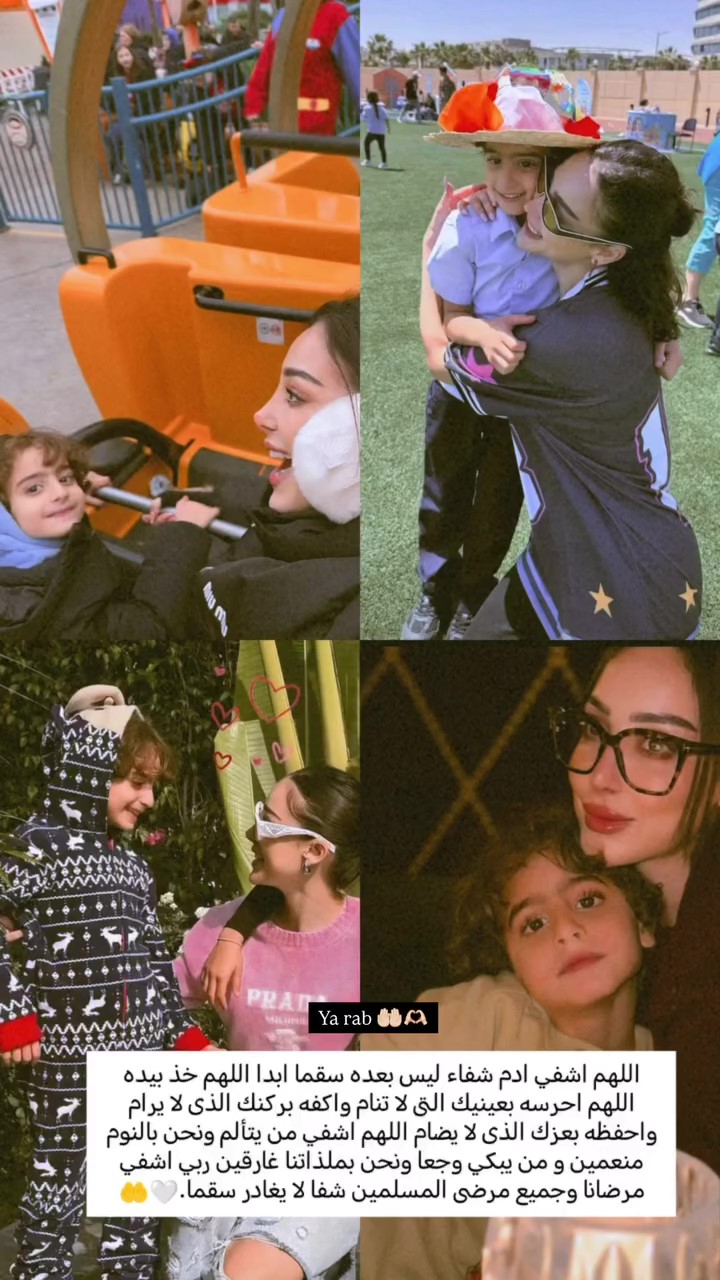ونشرت والدته عددًا صورًا من داخل المستشفى، طالبة الدعاء له. وكتبت: : ” اللهم اشفي ادم شفاء ليس بعده سقما ابد اللهم خذ بيده اللهم احرسه بعينيك حيث لا تنام واكفه بركنك الذي لايرام واحفظه بعزك الذي لايضام”.
