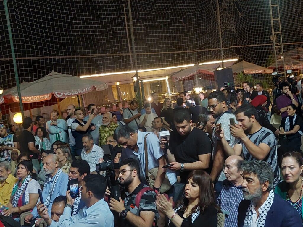 وكان الاتحاد العام لنقابات المهن التمثيلية والسينمائية والموسيقية، برئاسة المخرج عمر عبد العزيز، قد دعا لوقفة تضامنية مع الشعب الفلسطيني، في ظل الحرب التي يخوضها مع العدو الإسرائيلي.
