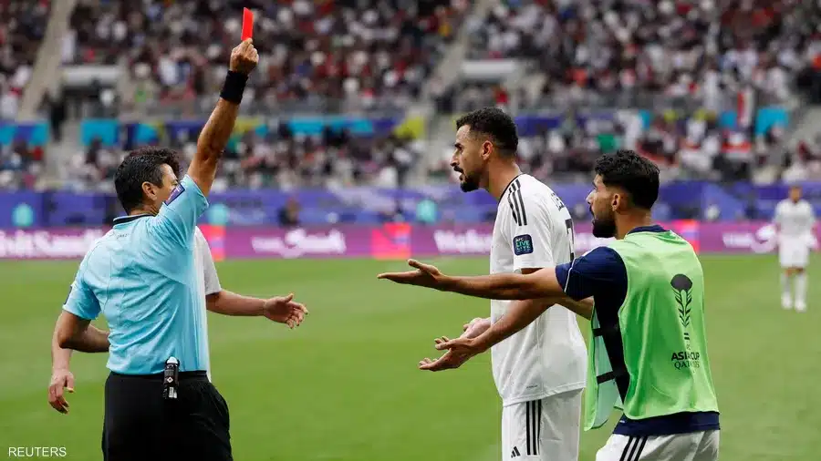 اللقطة تمثلت بحالة الطرد التي حصل عليه مهاجم منتخب العراق، أيمن حسين، بسبب “طريقة احتفاله”، بعد تسجيله الهدف الثاني في مرمى الأردن.