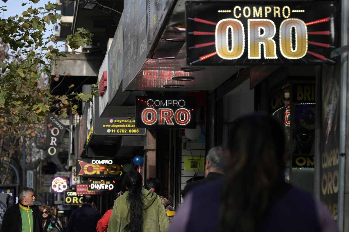 وفي حين لم يدخل متجر أحذية على مقربة من سوق الذهب زبون واحد لساعات، يصطف المئات أمام إل تاسادور، وهو أحد المتاجر الرئيسية لشراء المجوهرات في قلب بوينوس ايرس ، حيث تعرض لافتات عدة كُتب عليها: “نشتري الذهب”.