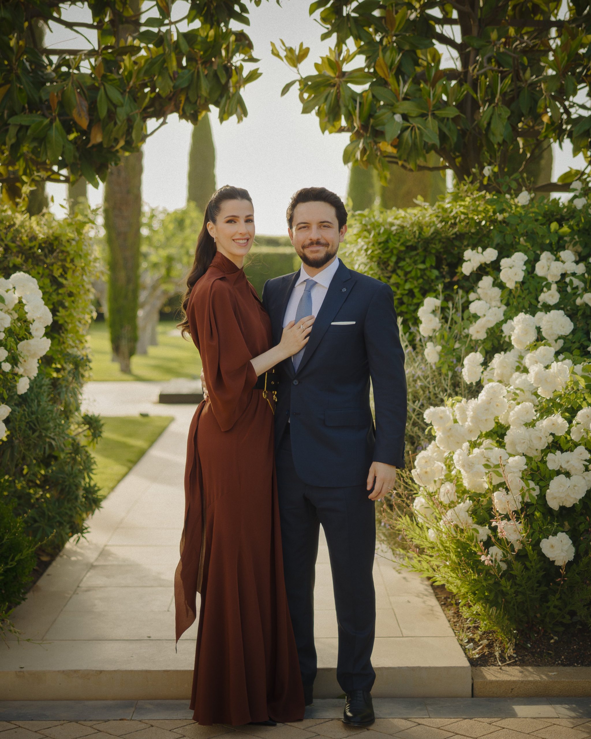 كعادتها، تختار الأميرة رجوة إطلالاتها العامة بشكل مدروس لا خطأ فيه. واحتفاءً بالمناسبة، نُشرت صور جديدة للأمير الحسين والأميرة رجوة، يُرجّح أنها التُقطت في الشهر الفائت خلال عقد قران سمو الأميرة عائشة بنت فيصل، في منزل العائلة “بيت الأردن”.
