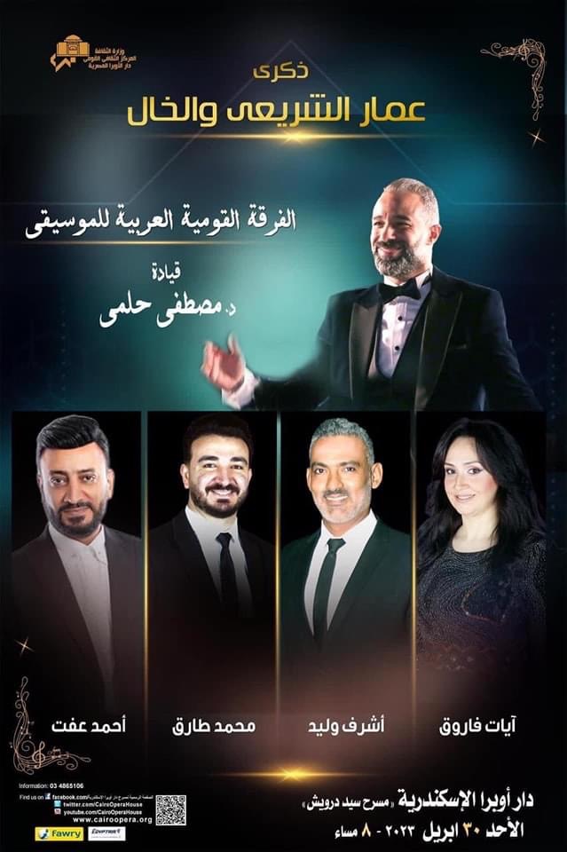 تحيى دار الأوبرا المصرية ذكرى اثنين من عمالقة النغم والكلمة هما الموسيقار عمار الشريعى وشاعر العامية الخال عبد الرحمن الابنودى من خلال حفل الفرقة القومية العربية للموسيقى بقيادة المايسترو الدكتور مصطفى حلمى والذى تحل عليه الفنانة هدى عمار كضيف شرف وذلك فى الثامنة مساء الأحد 30 أبريل الجاري