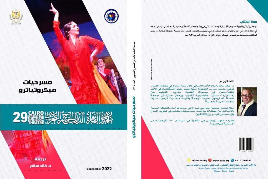 خالد سالم أستاذ الأدب الإسباني والمترجم يضيف كتابين إلى قائمة ترجماته من اللغة الإسبانية إلى لغة الضاد. الكتاب الأول يضم عشرين مسرحية قصيرة، ميكرتياترو، والثاني عن التكنولوجيا والمسرح.