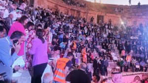 وأضافت : “اليوم نوقدُ شعلةَ المهرجان بثقةِ وأمل على الصعيد الثقافي والفني، سواء كان ذلك بالمشاركة المحلية الكبيرة للمبدعين الأردنيين، والمشاركة الفاعلة للمجتمع المحلي، والحضور الكبير لضيوف المهرجان، ومبدعيه من الدول العربية والصديقة الذين حملوا تراثهم بين ضلوعهم وحنايا قلوبهم، وجاءوا من سائر دول العالم، ليكتمل الفرح الأردني بصنوف الموسيقى وألوان الغناء والتراث الشعبي ومدارس الشعر وحقول الأدب وأساليب الفن التشكيلي وفنون الحرف اليدوية والصناعات الثقافية والإبداعية”.