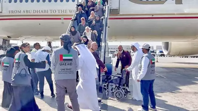 تنفيذا لتوجيهات صاحب السمو الشيخ محمد بن زايد آل نهيان، رئيس دولة الإمارات العربية المتحدة، بعلاج 1000 طفل فلسطيني من المصابين وعلاج 1000 من المصابين بأمراض السرطان من قطاع غزة في مستشفيات دولة الإمارات وتوفير أعلى مستويات الرعاية الصحية لهم، استقبل مطار أبوظبي، اليوم الثلاثاء، طائرة قادمة من مطار العريش، تحمل على متنها الدفعة السادسة من الأطفال الفلسطينيين الجرحى ومرضى السرطان، والذين بلغ عددهم 61 مريضاً و71 مرافقاً من عائلاتهم.