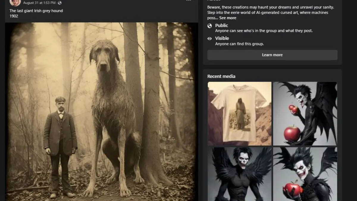 انشغلت مواقع التواصل الاجتماعي بصورة كلب صيد عملاق إيرلندي قيل أنها تعود للعام 1902. وجرى تداول الصورة بمختلف اللغات على اعتبار أنها نادرة، من ذلك الزمن، لكن متتبعي الحقائق على “السوشيل ميديا” سرعان ما اكتشفوا أن الصورة مركبة وتعود لبرنامج ذكاء اصطناعي.
