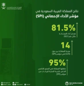 إلى ذلك، أعلن البنك الدولي – عبر موقعه الرسمي – نتائج تقييم نضج وأداء الأنظمة الإحصائية SPI الذي شمل 187 دولة، وفق المنهجية الجديدة لاحتساب مؤشر SPI لعام 2023م، الذي تضمن تحديث السلسلة الزمنية من عام 2016 حتى عام 2023 للدول كافة، ويتناول خمسة محاور رئيسة موزعة على أكثر من 51 مؤشرًا، تغطي مصادر وخدمات واستخدام البيانات والمنتجات الإحصائية والبنية التحتية، وتعد المملكة من الدول السبع الأولى من دول (G20) الأعلى تقدمًا في المحور الخامس، حيث حصلت على 95% في عام 2023.