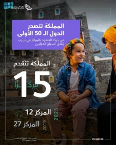 تواصل المملكة العربية السعودية، ريادتها العالمية في قطاع السياحة، حيث صعدت 15 مركزًا في ترتيب دول العالم في إنفاق السيّاح الدوليين متصدرة حركة الصعود بالمراكز بين الدول الخمسين الأولى، محققةً المركز الـ 12 عالميًا في عام 2023م مقارنةً بعام 2019م، وفقًا لمنظمة الأمم المتحدة للسياحة العالمية.