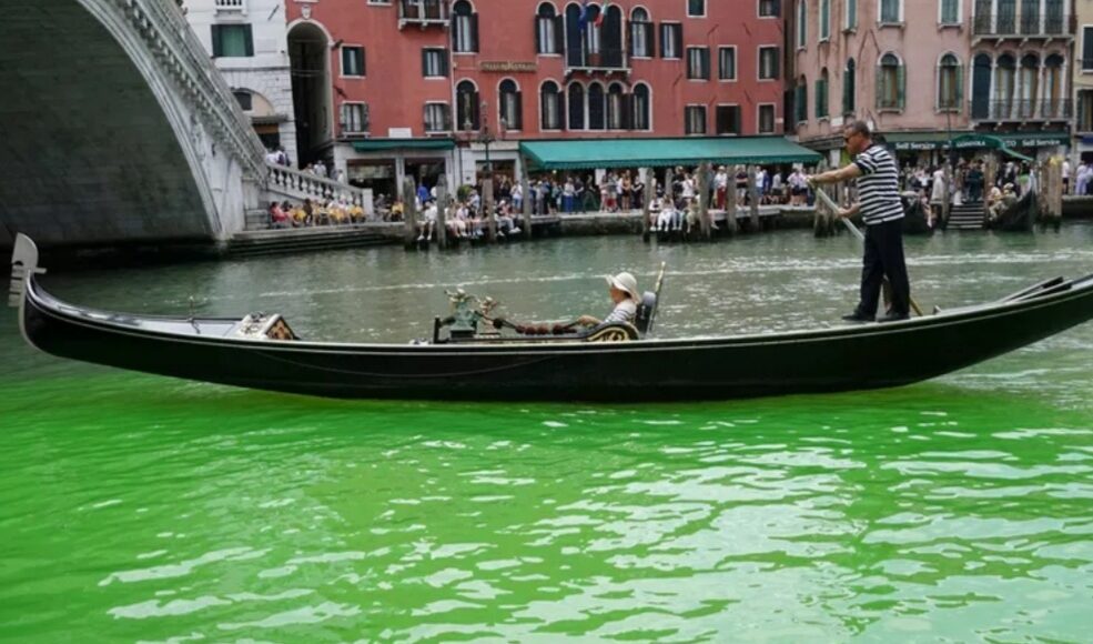 و اكتشفت السلطات في البندقية سبب تحول بعض القنوات الشهيرة في المدينة إلى اللون الأخضر الفلوري ، وشوهدت بقعة خضراء واضحة من السائل في البداية من قبل الزوار والمقيمين في المدينة بالقرب من جسر ريالتو ، وهو معلم سياحي شهير ، وفقًا لما ذكرته صحيفة The Guardian البريطانية، ثم انتشر السائل الأخضر إلى بقية القناة مما دفع المسؤولين المحليين إلى بدء تحقيق في السبب.