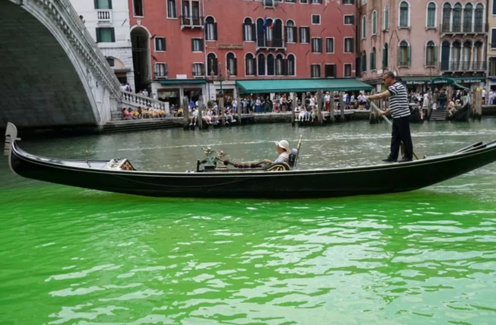 و اكتشفت السلطات في البندقية سبب تحول بعض القنوات الشهيرة في المدينة إلى اللون الأخضر الفلوري ، وشوهدت بقعة خضراء واضحة من السائل في البداية من قبل الزوار والمقيمين في المدينة بالقرب من جسر ريالتو ، وهو معلم سياحي شهير ، وفقًا لما ذكرته صحيفة The Guardian البريطانية، ثم انتشر السائل الأخضر إلى بقية القناة مما دفع المسؤولين المحليين إلى بدء تحقيق في السبب.