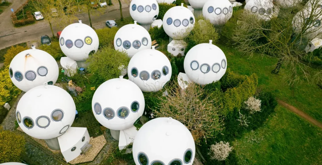 يقع حي Bolwoningen في بلدة دين بوش في هولندا، وهو حي فريد من نوعه تم إنشاؤه في عام 1984. ويتألف من 50 منزلًا خرسانيًا كرويًا، مجمعة معًا بأشكال فريدة للغاية، تتصل بمسارات متعرجة، سليمة تمامًا ومأهولة 40 بعد سنوات.