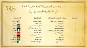 أعلنت «دار فضاءات» في عمّان عن القائمة القصيرة لجائزة «تلك القصص» التي تنظّمها بالشراكة مع موقع «تلك الكتب» الإلكتروني الصيني التابع لـ «دار انتركونتيننتال» للسنة السادسة على التوالي. وتعتمد المسابقة بنسبة 70 % على تقييم لجنة التحكيم وبنسبة 30 % على تصويت الجمهور من خلال موقع «تلك الكتب»، حيث بلغ عدد الذين شاركوا في التصويت الإلكتروني 249000 شخص. وضمّت لجنة التحكيم كلاً من: نهلة الجمزاوي وفادي السيد من الأردن، وسليم النجار وهناء عبيد من فلسطين، ومهدي زلزلي من لبنان.