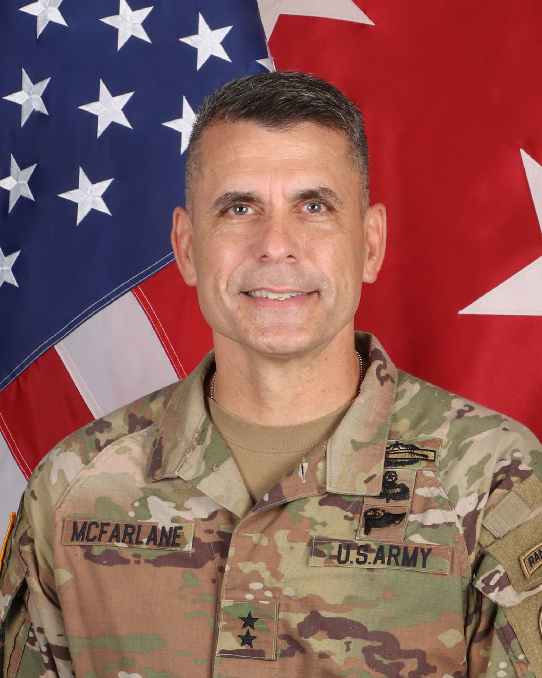 الميجور جنرال ماثيو ماكفارلين ، القائد العام لقوة المهام المشتركةعملية العزم الصلب