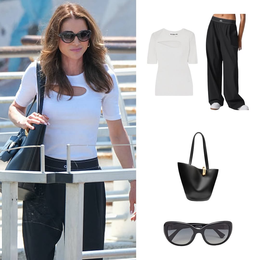 أثناء مغادرتها مطار ماركو بولو في البندقية، خطفت الملكة رانيا الأنظار بإطلالة عصرية تقوم على البساطة الراقية. ارتدت “توب” باللون الأبيض من علامة (Remain Birger Christensen) بقصّة عصرية مع فتحات، ونسّقته مع سروال أسود من (Alo). أما الأكسسوارات فكانت العنصر البارز في إطلالتها، إذ لفتت الأنظار بحقيبة (The Medium Bambola) من “جاكيموس” (Jacquemus) باللون الأسود، وهي قطعة سبق أن ارتدتها، فأضافت توازنًا إلى الإطلالة، في حين اختارت نظارة شمسية جديدة من “امبوريو ارماني” (Emporio Armani) بعدسات متدرجة باللون الأسود، جمعت ما بين الأناقة والعملية.